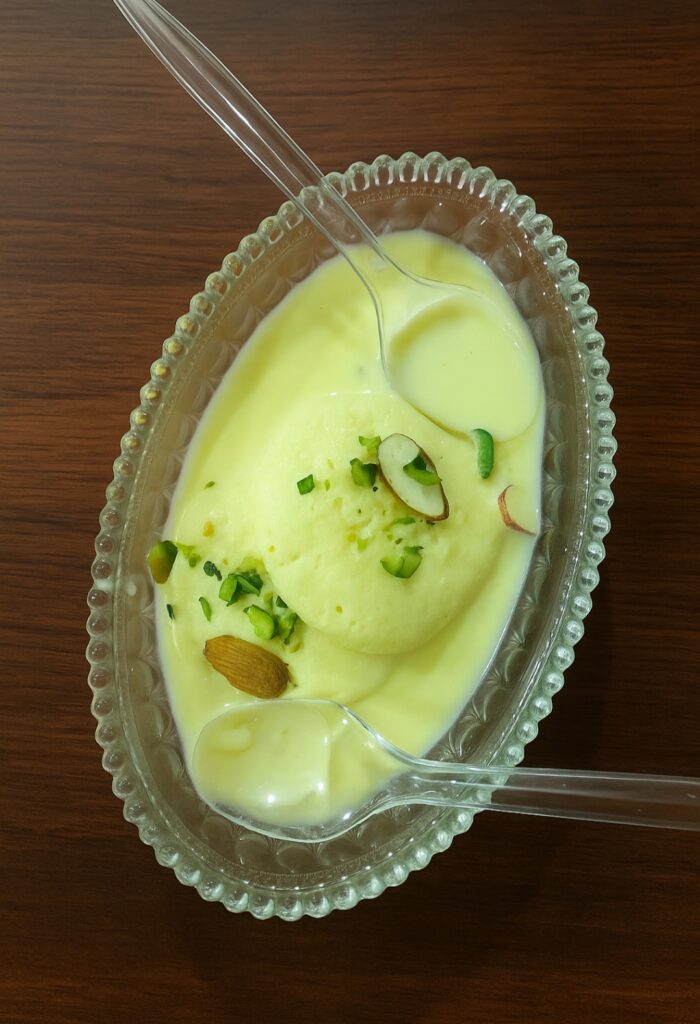 Special Rasgulla is a soft and spongy Indian sweet made from chenna (fresh cottage cheese) balls that are boiled in light sugar syrup until they absorb the sweetness and become juicy. The “special” variant is often richer in taste, sometimes flavored with saffron, cardamom, or rose water, and garnished with dry fruits. Known for its melt-in-mouth texture and syrupy delight, Special Rasgulla is a highlight of Bengali and Odia desserts, commonly enjoyed during festivals and celebrations.